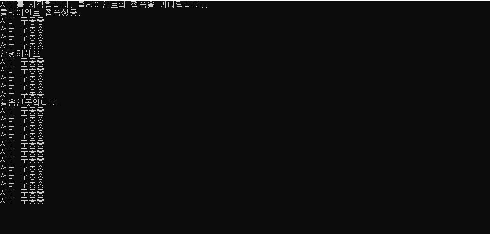 하나의 스레드에서는 서버 구동여부를 체크하며 서버구동중이라는 메시지를 출력해주고