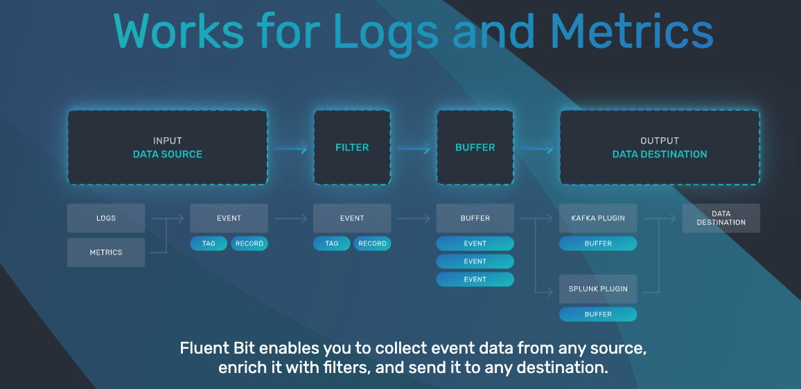 fluent bit은 위와같은 파이프라인을 가지고 log를 특정한 목적지로 보내주게 됩니다.
