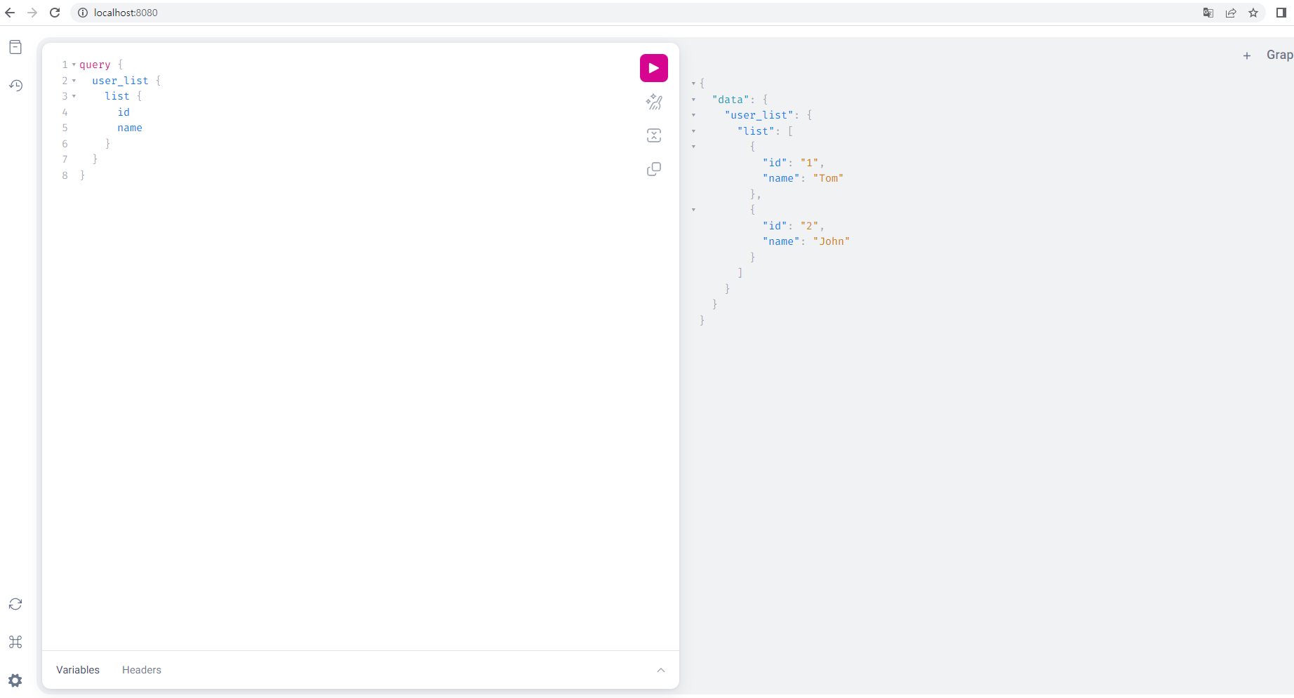 서버를 실행한 뒤 playground에 접근하면 데이터를 질의할 수 있습니다.