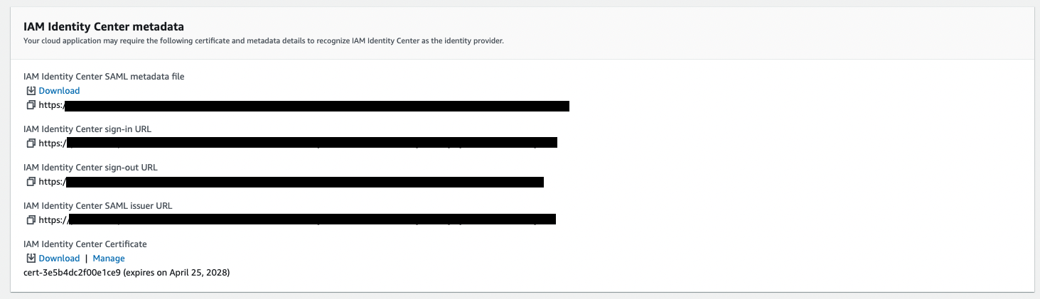 IAM identity Center SAML metadata file을 다운로드한 후 저장버튼을 누릅니다.